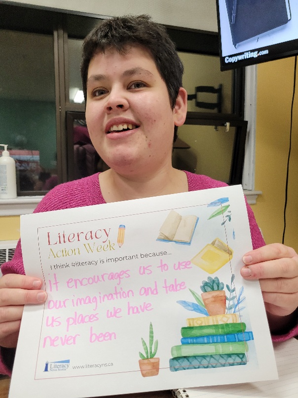 4) Post your photo on social media (Facebook, X, Instagram, and LinkedIn) and make sure to @mention Literacy Nova Scotia in your post.